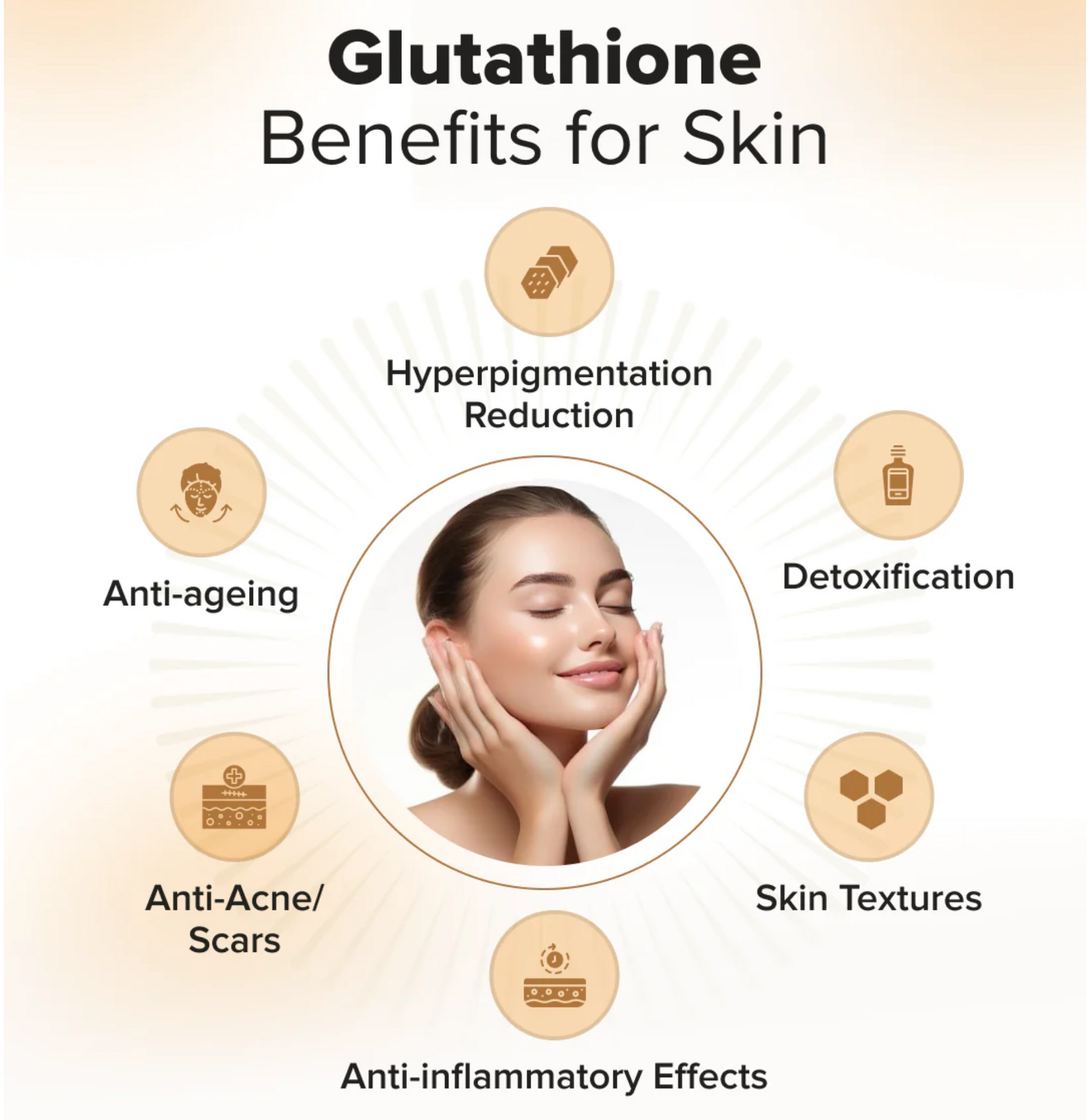💧 छालाको नमी र मृदुता बढाउने: Glutathione ले छालालाई भित्रैबाट हाइड्रेट गरी कोमल र मुलायम बनाउँछ।